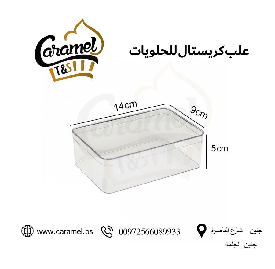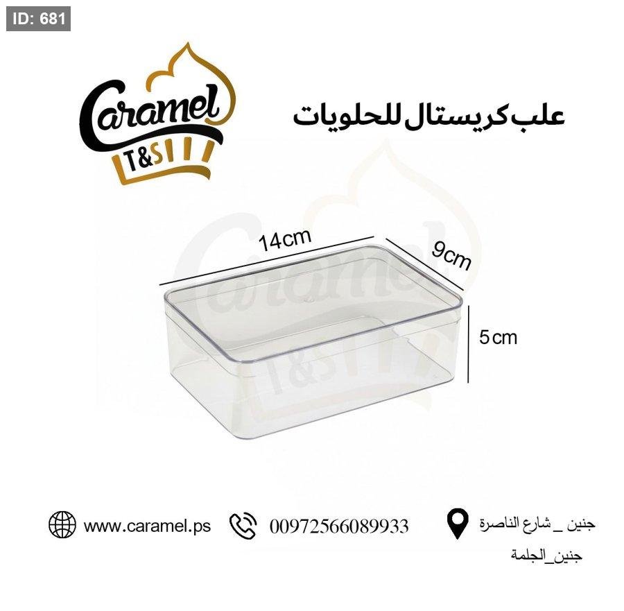 علب حلويات كريستال نقي مع غطاء شكل مستطيل طول 14 سم و عرض 9 سم و ارتفاع 5 سم "كرتونة 125 علبة"