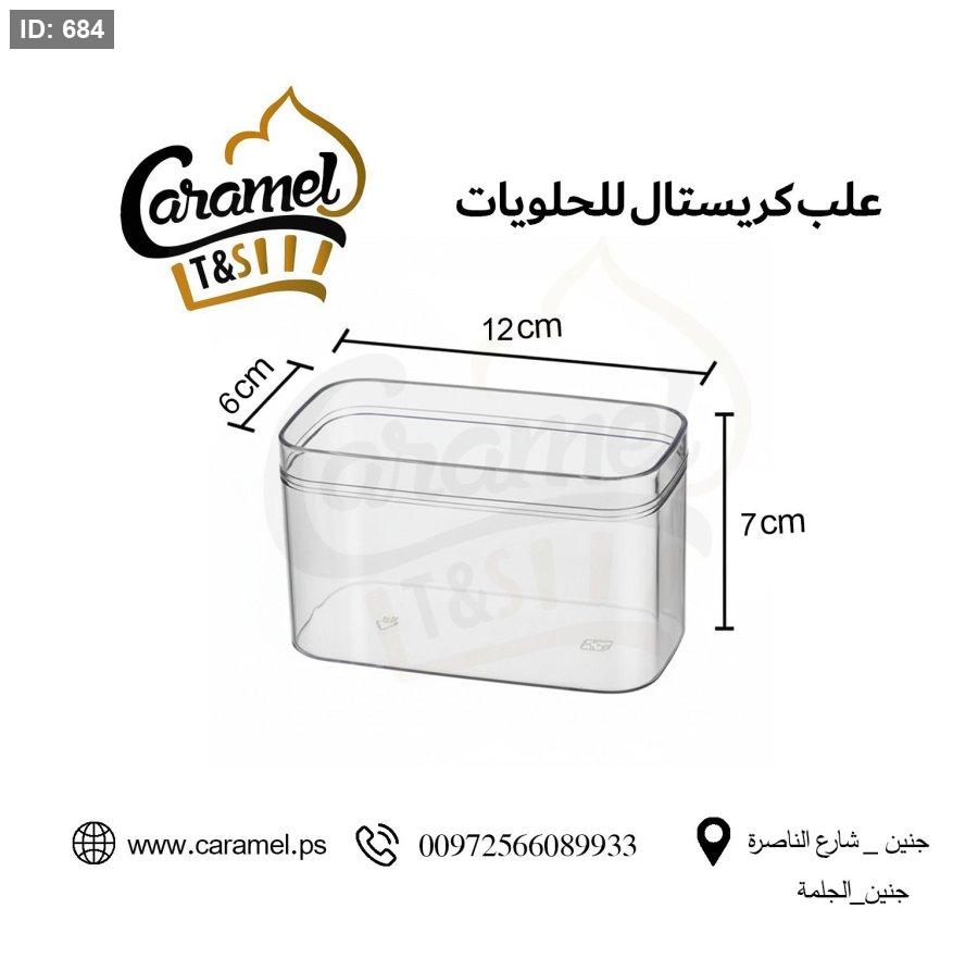 علب حلويات كريستال نقي مع غطاء شكل مستطيل طول 12 سم و عرض 6 سم و ارتفاع 7 سم "الكرتونة 210 علب"