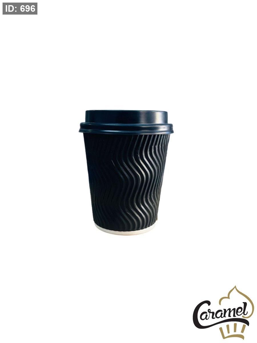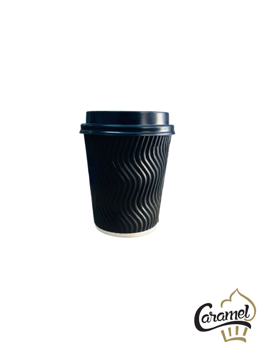 كاسات كرتون مقوى مع غطاء بلاستيك حجم 8 اوز " الرزمة 25 كاسة" مع الاغطية